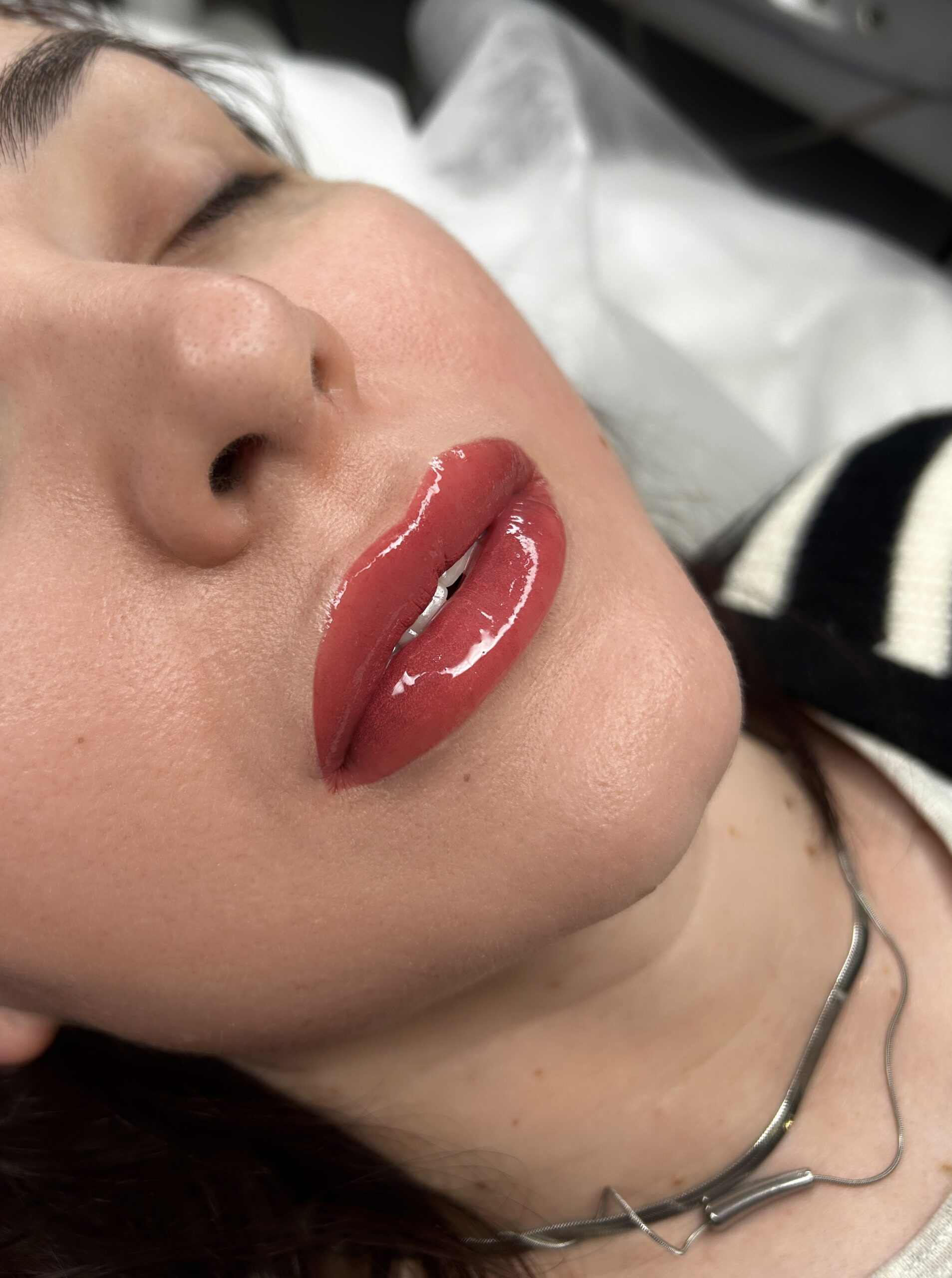 Technika mająca na celu optyczne “powiększenie ust”. Podobnie jak w przypadku techniki ombre, stosujemy technikę cieniowania z jaśniejszym kolorem bliżej śluzówki. Dodatkowo przy konturze (tzw. serduszku) rozświetlamy skórę białym barwnikiem, podkreślając kontur i  tworząc tak zwane “lip light”. W ten sposób uzyskujemy trójwymiarowy efekt pigmentacji.